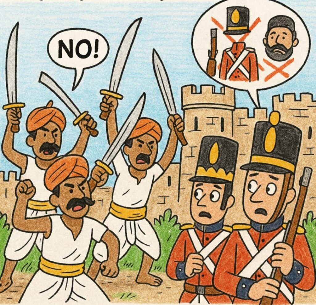 Four decades before the Revolt of 1857, on 10th July 1806, Indian soldiers at Vellore rose in anger against the British. This event is known as the Vellore Mutiny, and it all started because the British forced new dress codes — including strange headgear and shaving of beards!